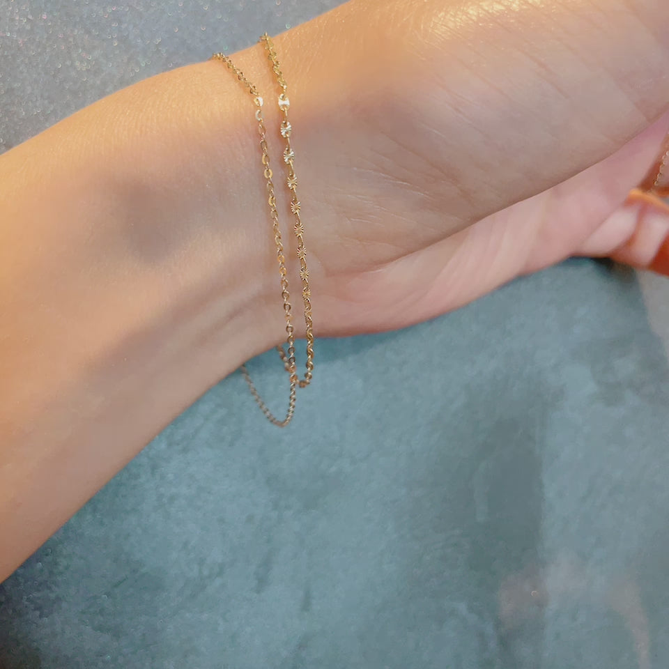 つけっぱなしOK。 汗や水に強い14Kは、生活のリズムに寄り添う“毎日の相棒”。時計や他のブレスレットとの重ねづけにも相性抜群で、一本だけでも確かな存在感。ミニマルでユニセックス、どんなスタイルにも溶け込みます。